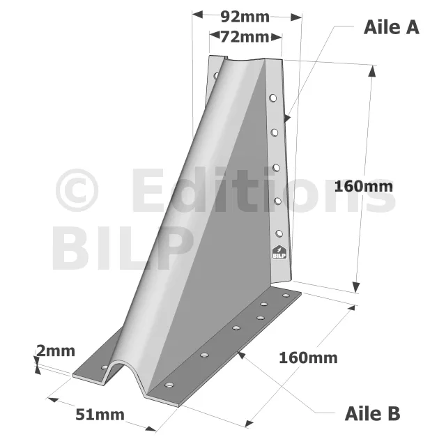 | Références | Dimensions [mm] | Perçages Aile A | Perçages Aile B | |||||