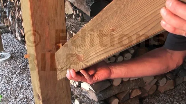 3. Si le support est en bois, l’équerre est aussi pointée ou vissée sur celui-ci.