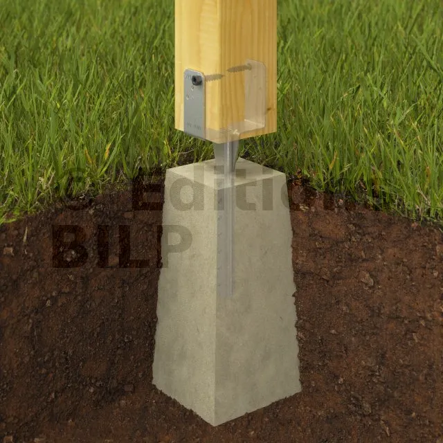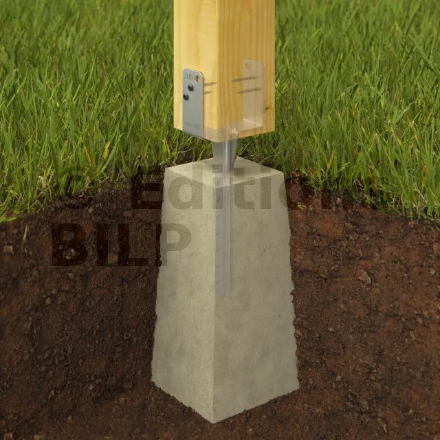 - Le pied de poteau peut aussi être noyé dans le béton au moment où ce-dernier est coulé.
