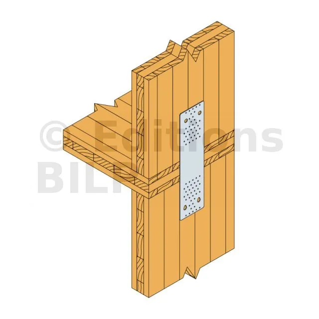n = nombre de fixations (pointes CNA ou vis CSA) sur la partie haute ou basse de la plaque. Ce nombre de fixations doit être identique sur les deux éléments bois.