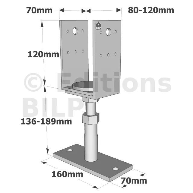 Grâce à leur système de réglage en hauteur et en largeur, les pieds de poteau réglables vario offrent une grande polyvalence d‘utilisation. Ils sont disponibles avec platine ou fer à béton. L‘assemblage peut être réalisé après le scellement de la platine.