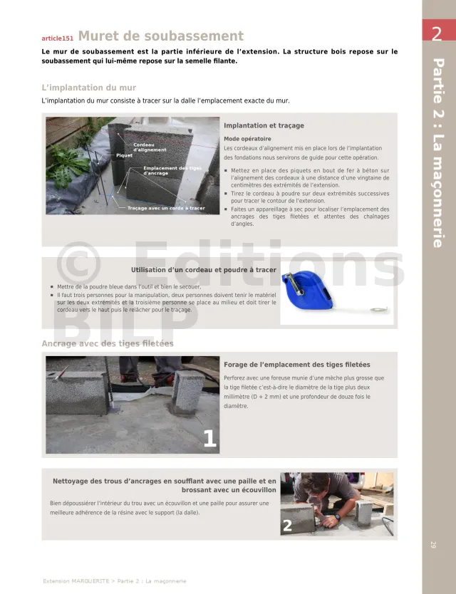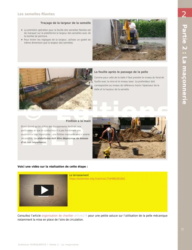 - La maçonnerie pas à pas : du terrassement à la pose de la dalle.