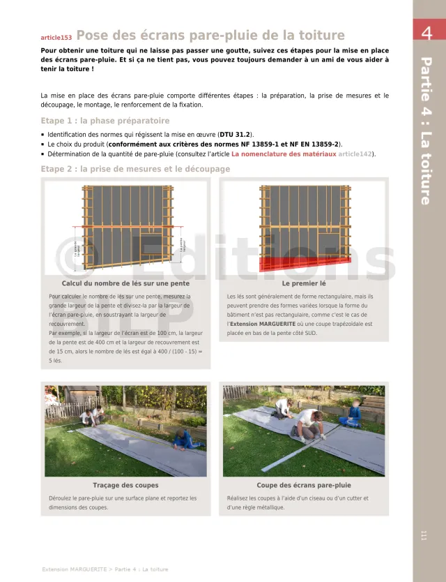- Pose des écrans pare-pluie de la toiture