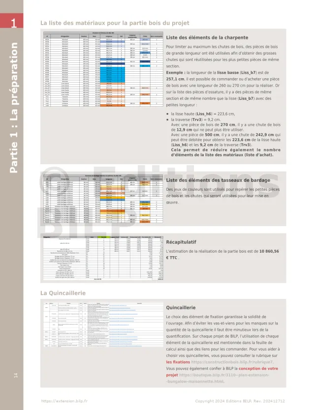 - Plans et nomenclature des matériaux