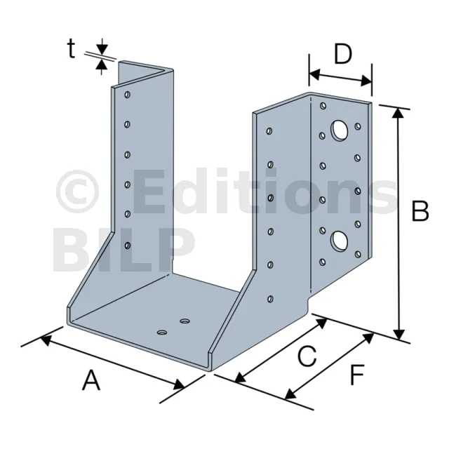 - Robustesse et épaisseur : Fabriqués en acier galvanisé, ces sabots à ailes extérieures classiques sont extrêmement résistants à la corrosion et offrent une épaisseur adaptée pour supporter des charges lourdes.