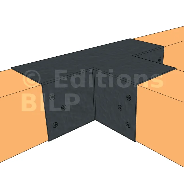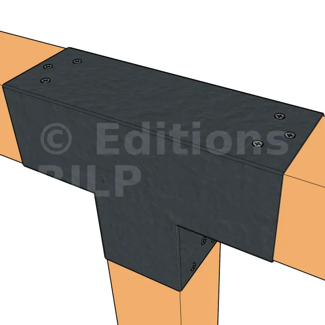 Il sert à raccorder une poutre de 90x90mm perpendiculairement à une autre poutre de 90x90mm, SANS être soutenu par un poteau vertical. Il permet également la connexion d’une longue poutre de 90x90mm à un poteau intermédiaire de 90x90mm.