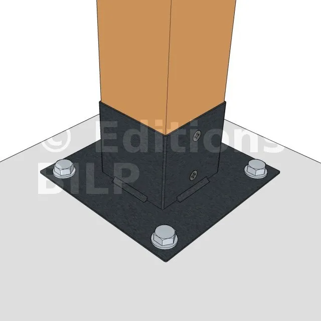 Il permet la fixation des poteaux sur une dalle ou un plot en béton.