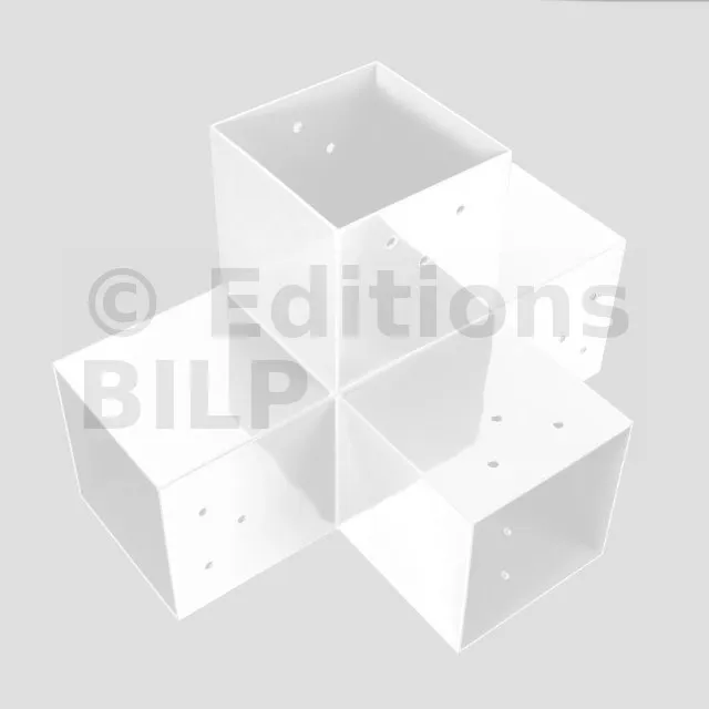 Il permet de raccorder une poutre de 120x120mm perpendiculairement à un chevron de 120x120mm, le tout étant supporté par un poteau vertical de 120x120mm.