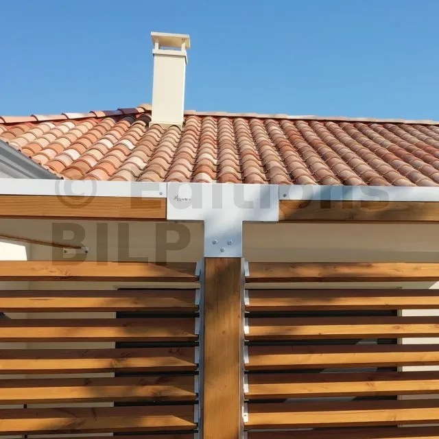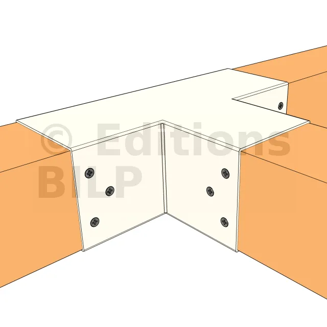 Il sert à raccorder une poutre de 90x90mm perpendiculairement à une autre poutre de 90x90mm, SANS être soutenu par un poteau vertical. Il permet également la connexion d’une longue poutre de 90x90mm à un poteau intermédiaire de 90x90mm.