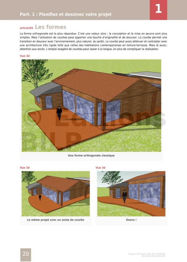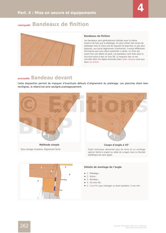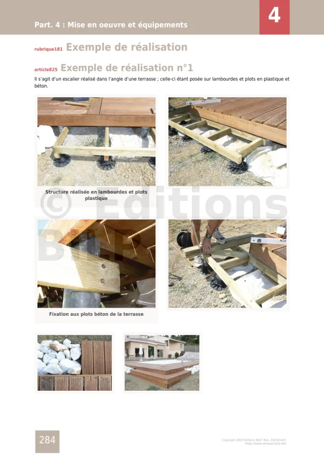 Toutes les techniques de pose et de matériels sont proposés et expliqués avec photo à l’appui. L’accés au base de calcul pour la pose plot et lambourde est très faciles et aide beaucoup pour la construction.