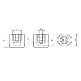 | Référence | Ø (mm) | d (mm) | h (mm) | b (mm) | m | h1 (mm) |
