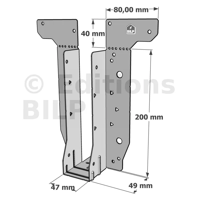 - Étrier fourni avec ses brides supérieures droites, pliables sur chantier afin de s’adapter à toutes les hauteurs de solives,
