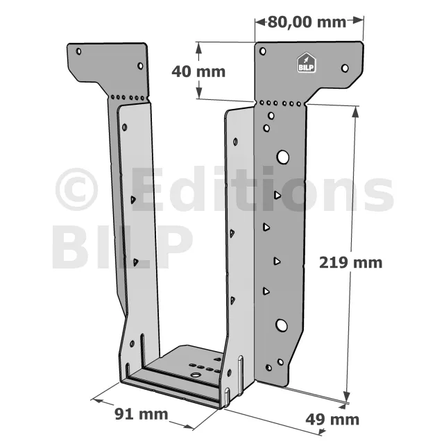 - Étrier fourni avec ses brides supérieures droites, pliables sur chantier afin de s’adapter à toutes les hauteurs de solives,