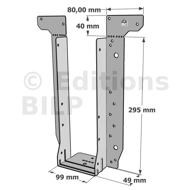 - Étrier fourni avec ses brides supérieures droites, pliables sur chantier afin de s’adapter à toutes les hauteurs de solives,