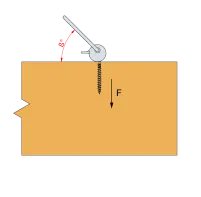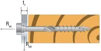 - Vis SSH installée avec un fraisage, perpendiculairement à la fibre du bois, et sollicitée avec un angle.