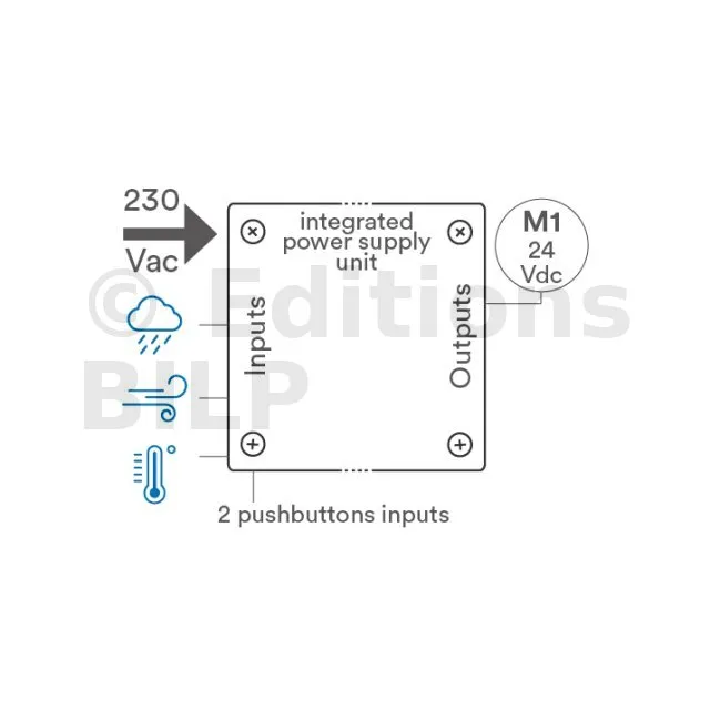 Boitier de commande 1 sortie 24V + alim 80W intégrée + entrées pluie/vent/température - Réf. TVPLD868C80TT3C
