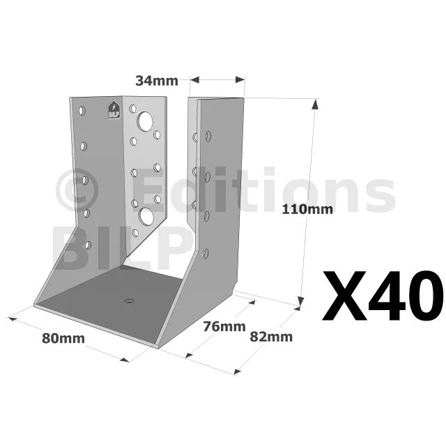 On admet une tolérance de 2 mm maximum entre l‘épaisseur du bois et la largeur du sabot. Exemple : un sabot plié à 76 mm peut porter une épaisseur de bois de 74 mm.