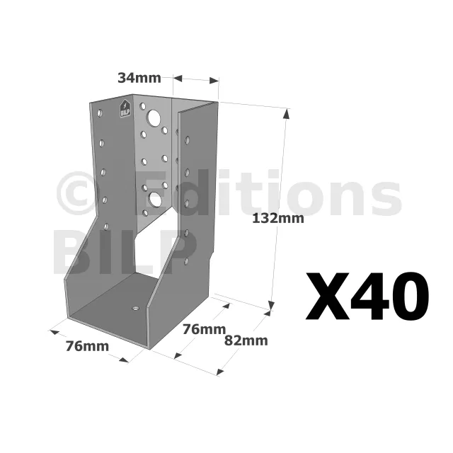 On admet une tolérance de 2 mm maximum entre l‘épaisseur du bois et la largeur du sabot. Exemple : un sabot plié à 76 mm peut porter une épaisseur de bois de 74 mm.