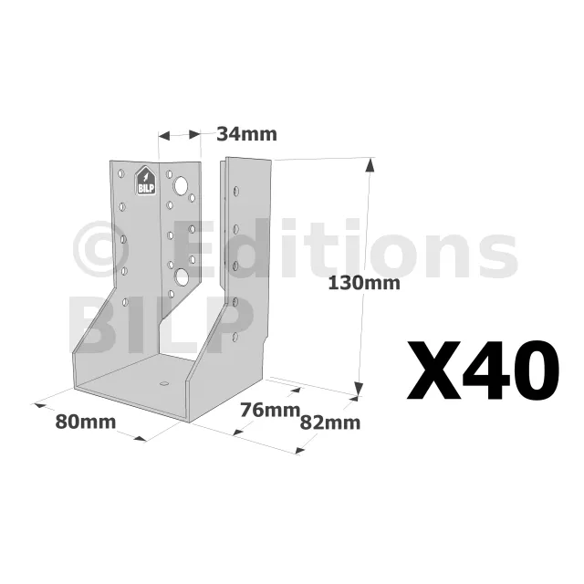 On admet une tolérance de 2 mm maximum entre l‘épaisseur du bois et la largeur du sabot. Exemple : un sabot plié à 76 mm peut porter une épaisseur de bois de 74 mm.