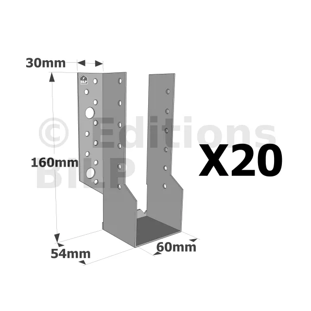 Sabots à ailes extérieures, gamme SBE ECONOMIQUE (épaisseur 1,5mm, profondeur 55mm) - Réf. SBE60/160_20
