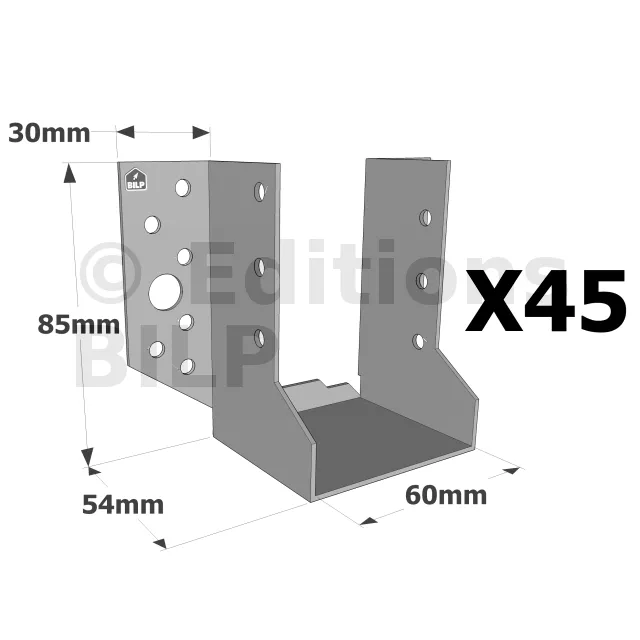 Sabots à ailes extérieures, gamme SBE ECONOMIQUE (épaisseur 1,5mm, profondeur 55mm) - Réf. SBE60/85_45
