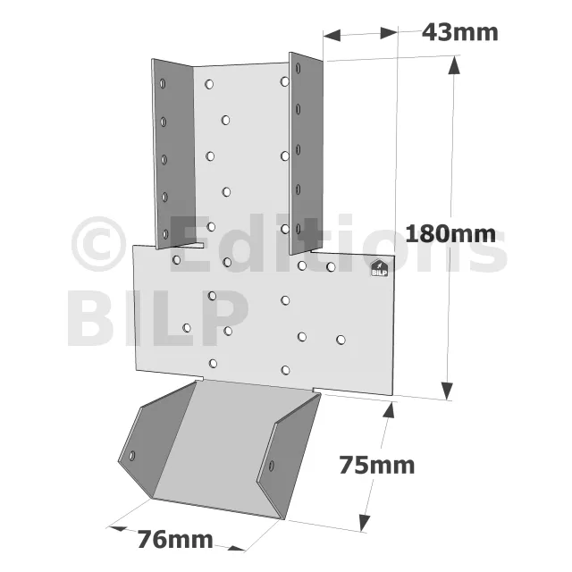 - Poutres lisses : Ces sabots inclinés permettent une fixation sûre et flexible des poutres lisses, essentielles pour la répartition des charges dans une structure en bois.