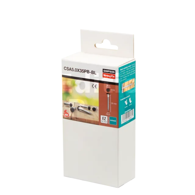 Les vis CSA5.0x40ZPB ont été étudiées pour la mise en œuvre discrète des équerres et des connecteurs en finition noire. Leur tête conique assure un contact complet avec le connecteur. L’empreinte étoile permet de maintenir la vis lors du montage.
