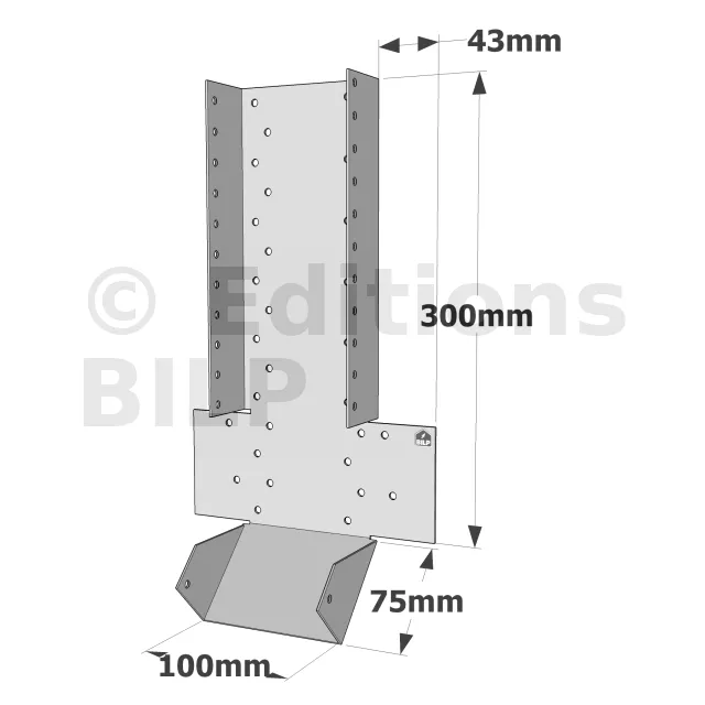 - Poutres lisses : Ces sabots inclinés permettent une fixation sûre et flexible des poutres lisses, essentielles pour la répartition des charges dans une structure en bois.