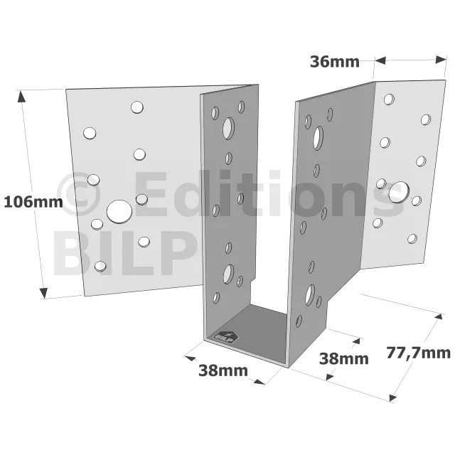 - Solives et poutres : Ils assurent une fixation solide des solives et des poutres, garantissant la stabilité des planchers. Ils sont utilisée pour fixer les éléments horizontaux de la charpente, comme dans les planchers ou les plafonds.