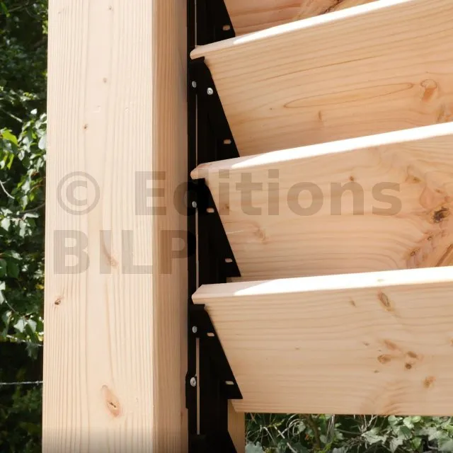 Les mécanismes constituent la base du SUNDIY. Ils permettent de couvrir une hauteur (ou profondeur) de 51cm, et jusqu’à une largeur de 150cm (conseillé) avec des lames en bois. Il est possible d’aller jusqu’à 200cm, mais le travail du bois risque d’être plus important au fil des ans.