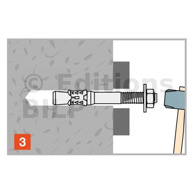 - Montage au travers de l’élément à fixer, Ø de perçage = Ø de cheville,