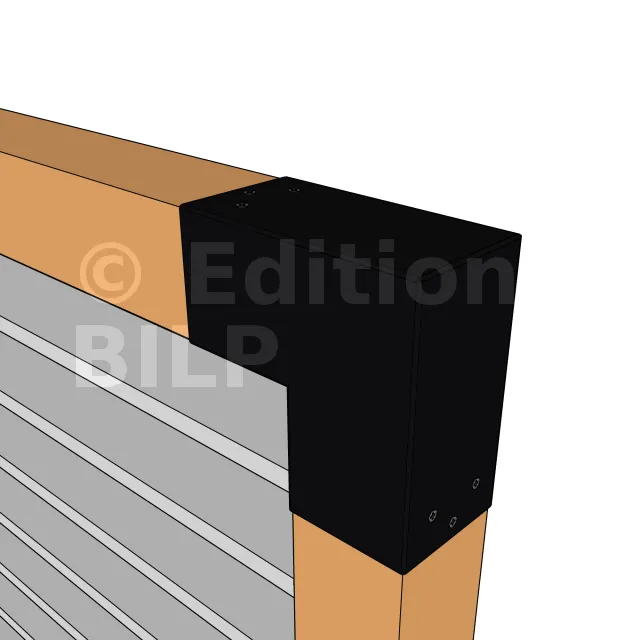 Il est utilisé dans un angle extérieur. Ce connecteur va permettre de raccorder une poutre 90x90mm perpendiculairement à une autre poutre ou à un poteau vertical 90x90mm.
