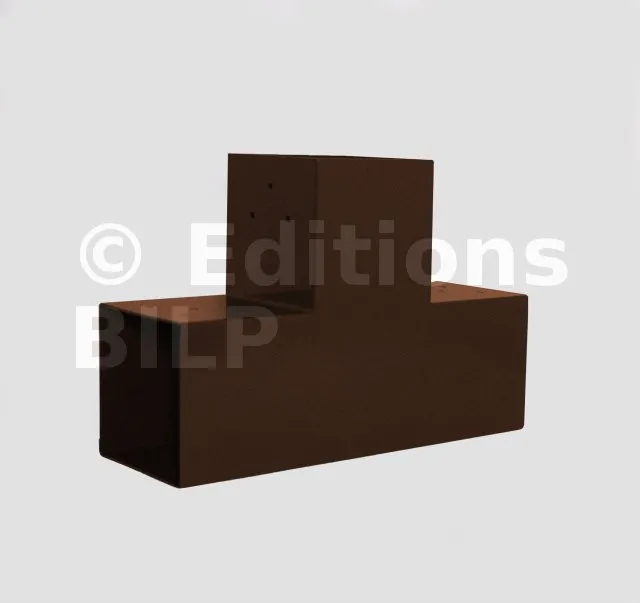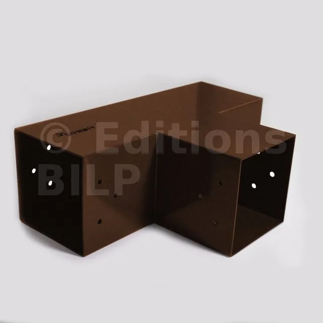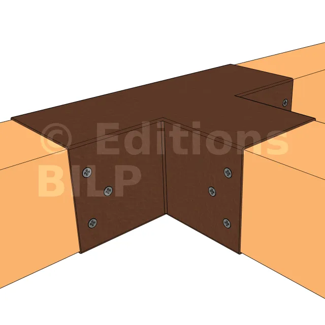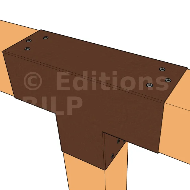 Il sert à raccorder une poutre de 90x90mm perpendiculairement à une autre poutre de 90x90mm, SANS être soutenu par un poteau vertical. Il permet également la connexion d’une longue poutre de 90x90mm à un poteau intermédiaire de 90x90mm.