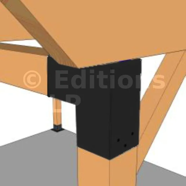 Il est utilisé dans un angle extérieur. Ce connecteur va permettre de raccorder une grosse poutre 120x120mm perpendiculairement à une autre poutre ou à un poteau vertical 120x120mm.