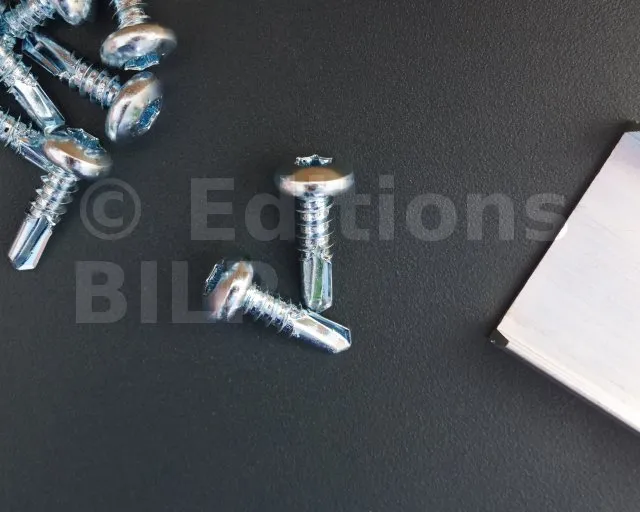Les mécanismes du système SUNDIY sont solidement fixés à la structure (que ce soit du bois, de l’aluminium, du béton, etc.) à l’aide des clips* de fixation qui doivent être vissés au préalable. Les vis proposées ici sont spécialement conçues pour garantir une fixation efficace dans l’acier.