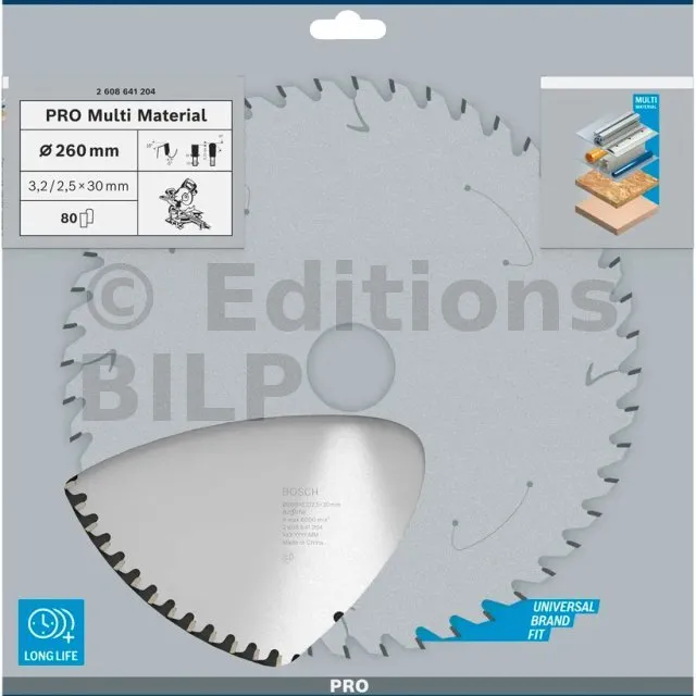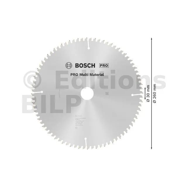 Lame de scie circulaire PRO 260 x 30 x 3.2 mm - 80 dents - Multi matériaux - Réf. 2608641204