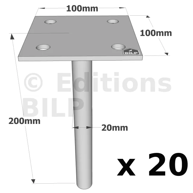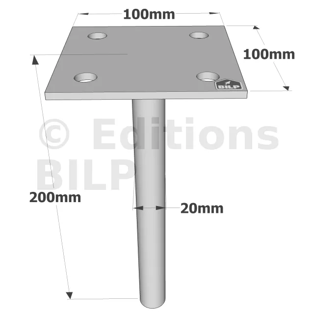 Pieds de poteau à sceller simple platine - Réf. PPSP100_20