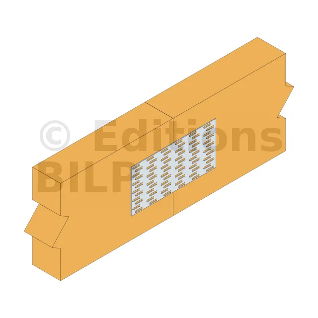 1. Positionner la plaque sur le ou les éléments bois à fixer