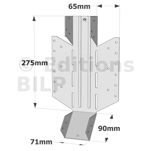 - Les trous oblongs permettent le clouage en biais si nécessaire.