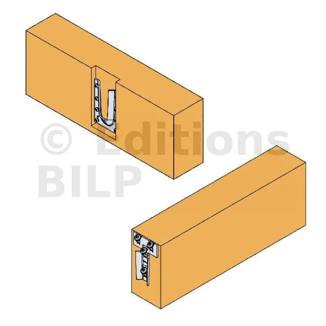 Il est recommandé d’utiliser un gabarit pour la pose de la partie mâle afin d’éviter que la pièce glisse lors de la pose des vis inclinées.