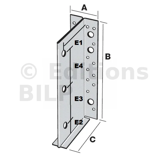 | Largeur | Hauteur | Largeur poteau | Hauteur (A) | Profondeur (B) | largeur (C) | largeur (D) | Epaisseur (t1) | Epaisseur (t2) | Ø13 | Ø5 | Ø13 | ||