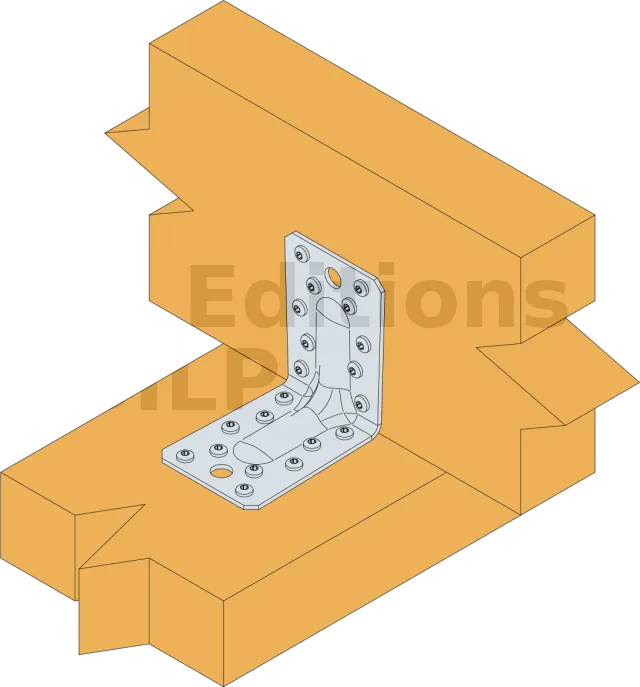 - Fixation bois/bois - type poteau/poutre2 équerres ; Aile A : 10 ; Aile B : 8 ; type : Pointes annelées CNA Ø4.0x35 ou Ø4.0x50 mm