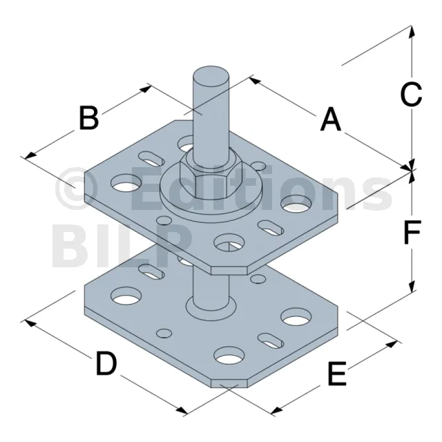 Pied de poteau mini réglable, hauteur (B) : 30 à 90mm, cdt : 10 pièces - Réf. APB7090/100_10