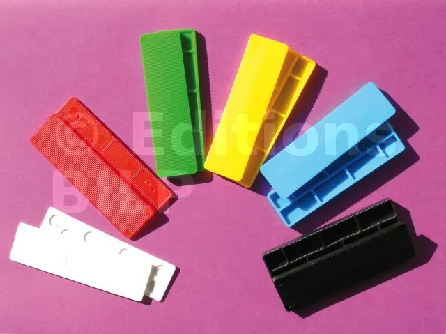 Cales plates en plastique indispensables pour la pose dans tous les corps de métier du second oeuvre, vitrage, agencements, etc.