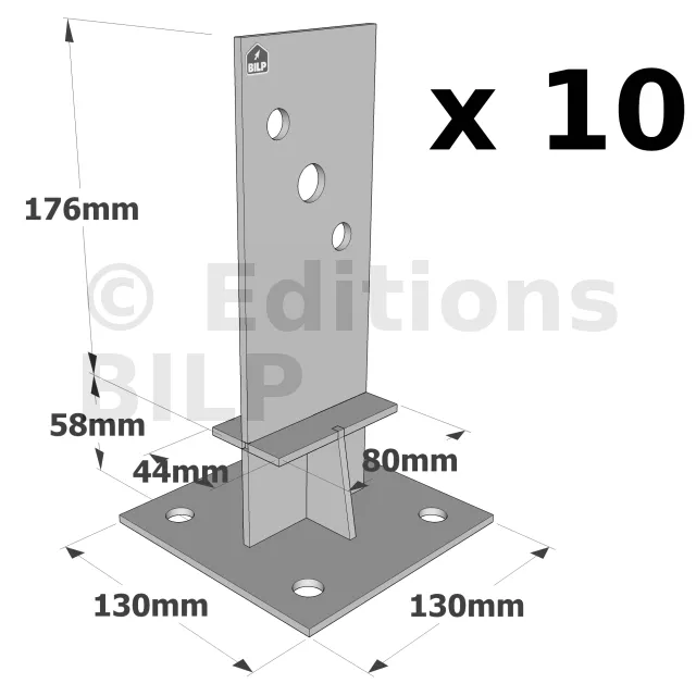 - Connexion bois sur support rigideSur poteau : 2 broches Inox Ø12 ou Ø16 ou Boulons inox Ø 12 mm ou 16 mm suivant perçages ; sur béton : 4Ø12 (goujons BOAX-II M12-104/5 A4 ; tige filetée M12) ; sur acier : Boulons inox Ø12