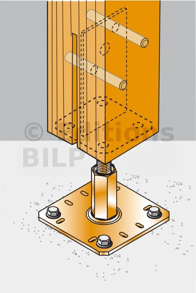 4. Le pied de poteau peut aussi être noyé dans le béton au moment où ce-dernier est coulé.