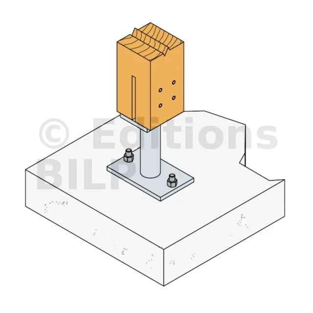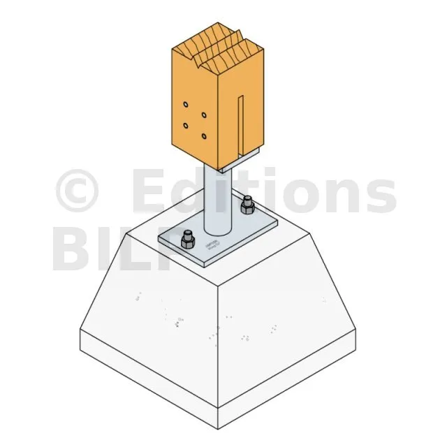 - Connexion bois sur support rigideSur poteau : 4Ø8 (broches STD) ; sur béton : 2Ø12 (goujons WA ; tige filetée)