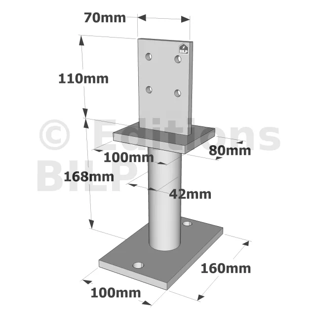- La longueur des broches correspond à la section du poteau.