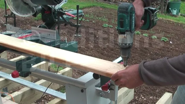 1. Forer une entaille verticale Ø28 mm, d’une longueur de 150 mm environ, centrée à l’extrémité du poteau bois,