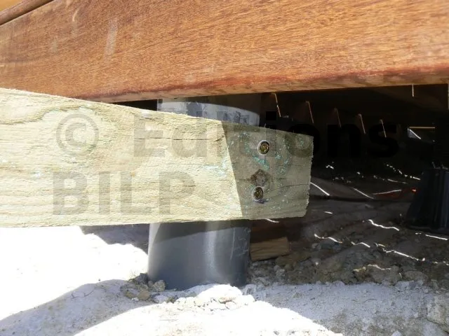 - Protège le poteau bois de l’humidité en le surélevant du sol.